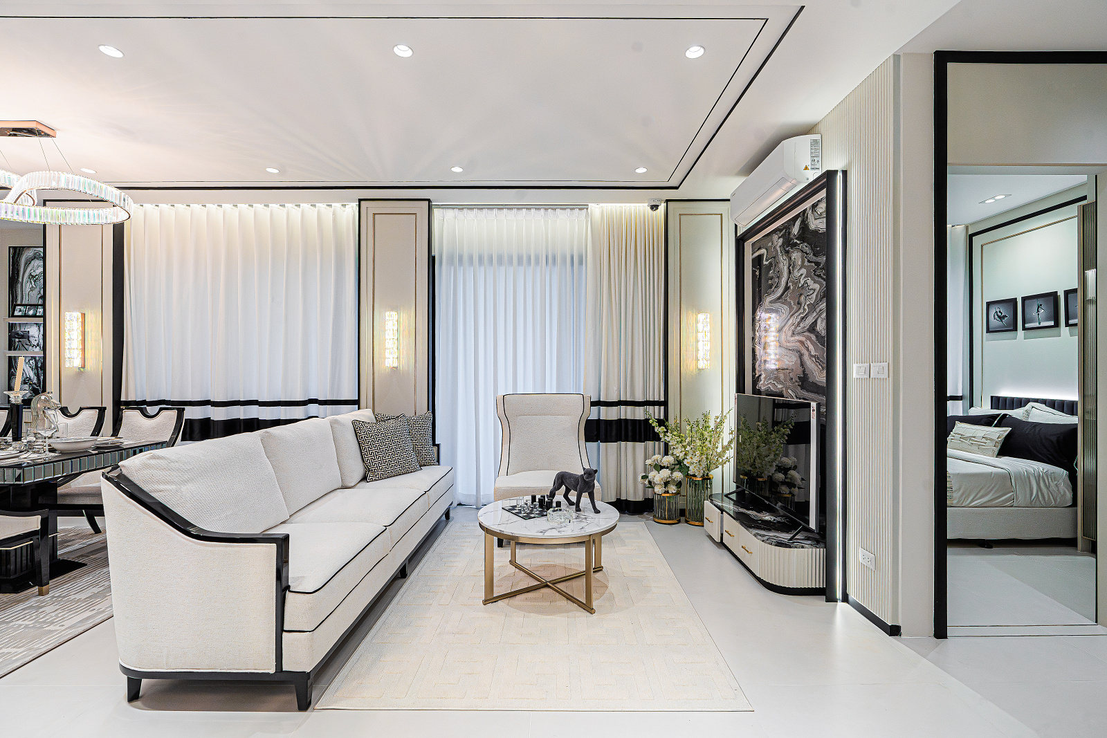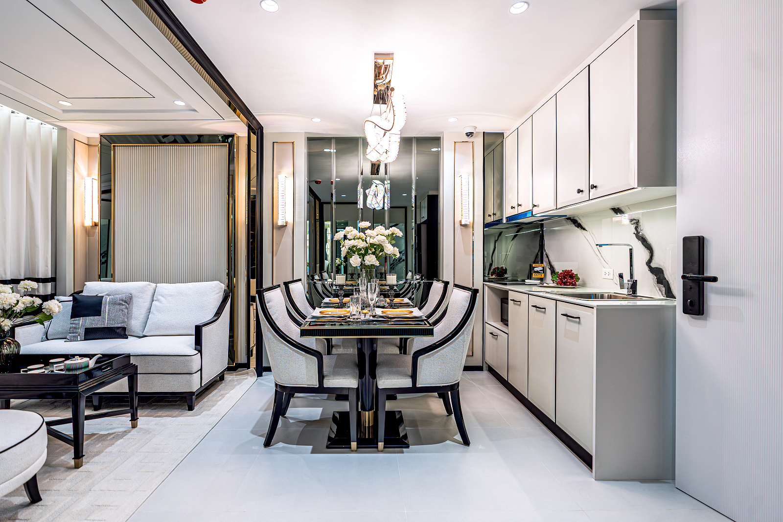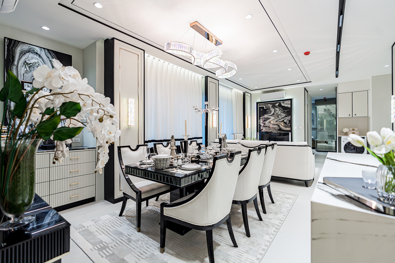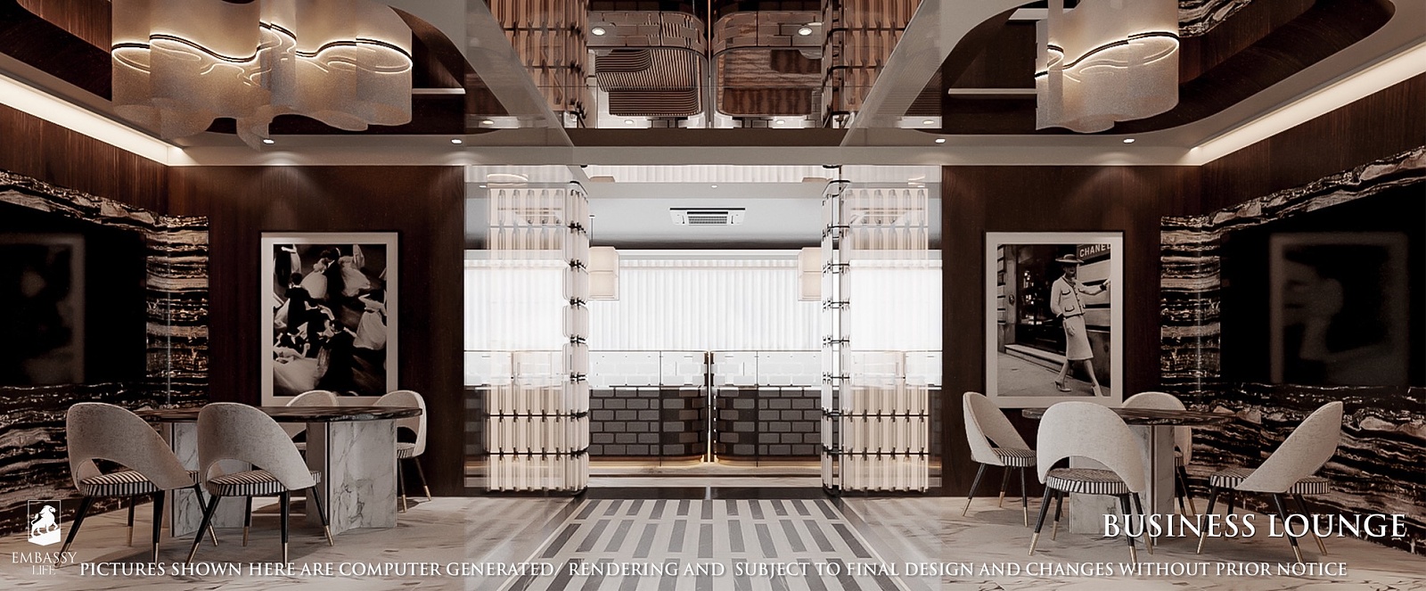 Každá rezidencia je inšpirovaná nadčasovou výzdobou v štýle Embassy s rafinovanou čierno-bielou estetikou, ktorá vyžaruje eleganciu a rafinovanosť. Okná siahajúce od podlahy po strop rámujú ohromujúce panoramatické výhľady, či už uprednostňujete pohľad na iskrivé more, príjemné bazénové oblasti alebo pulzujúce mesto pod vami.
