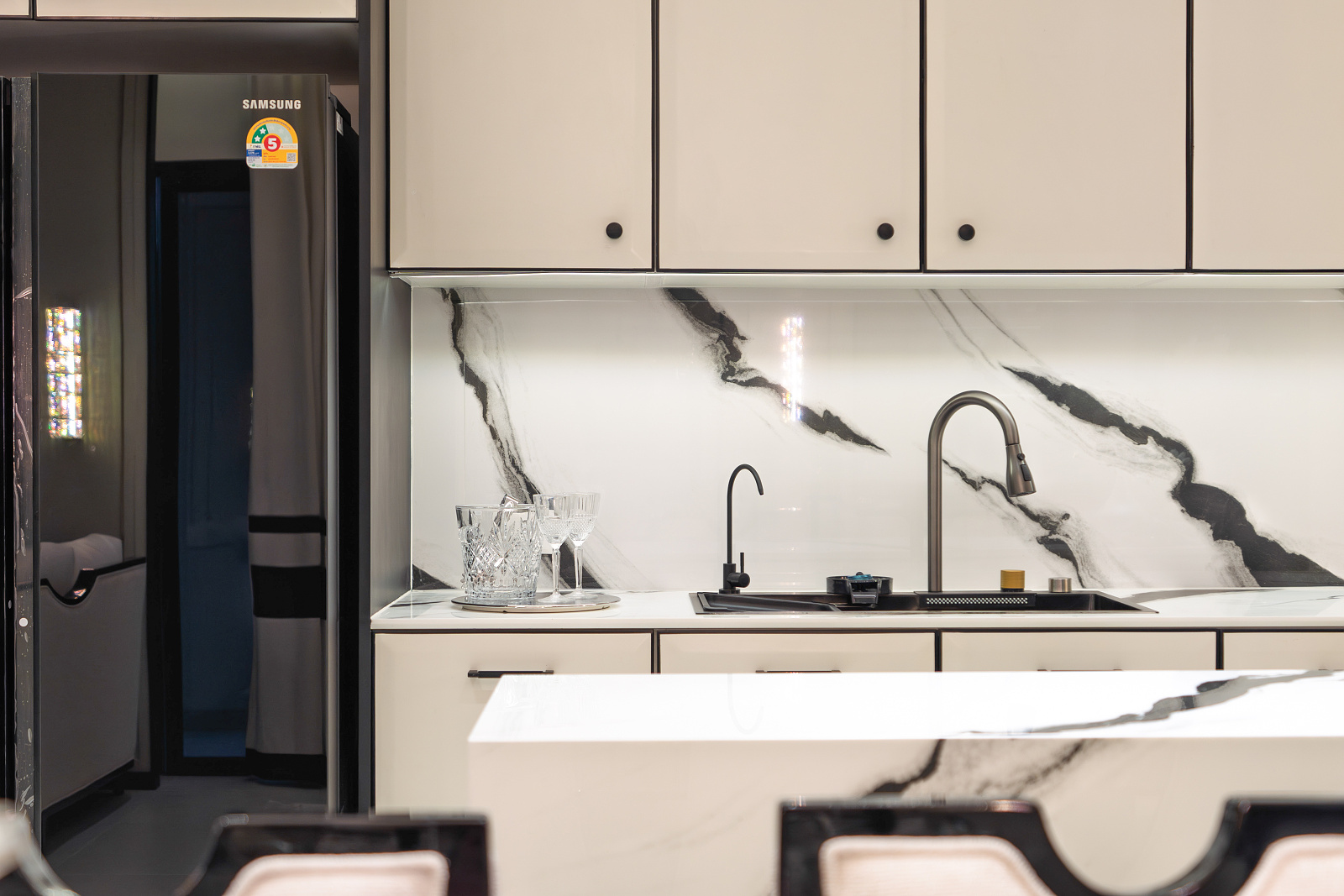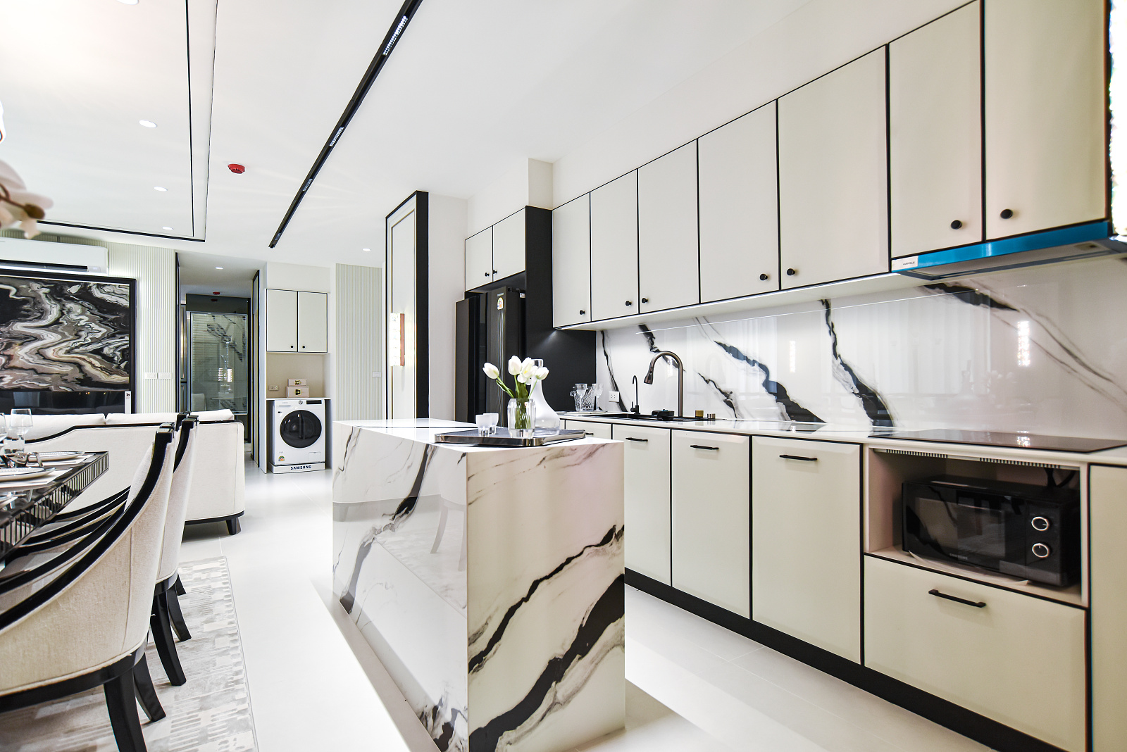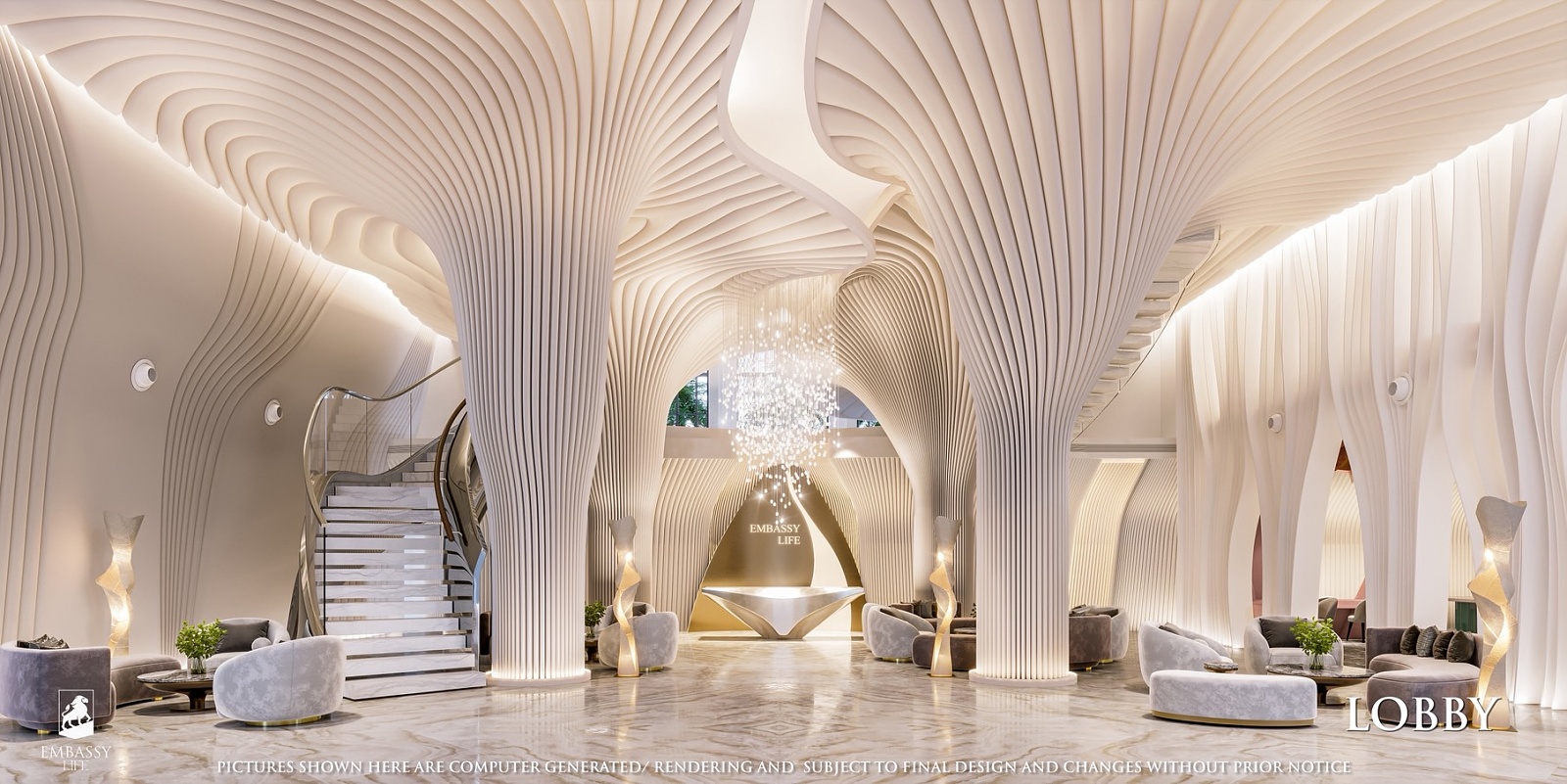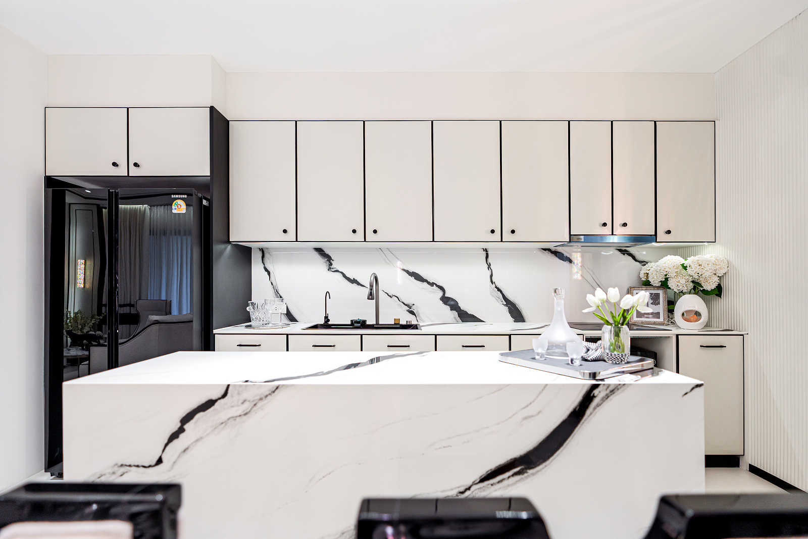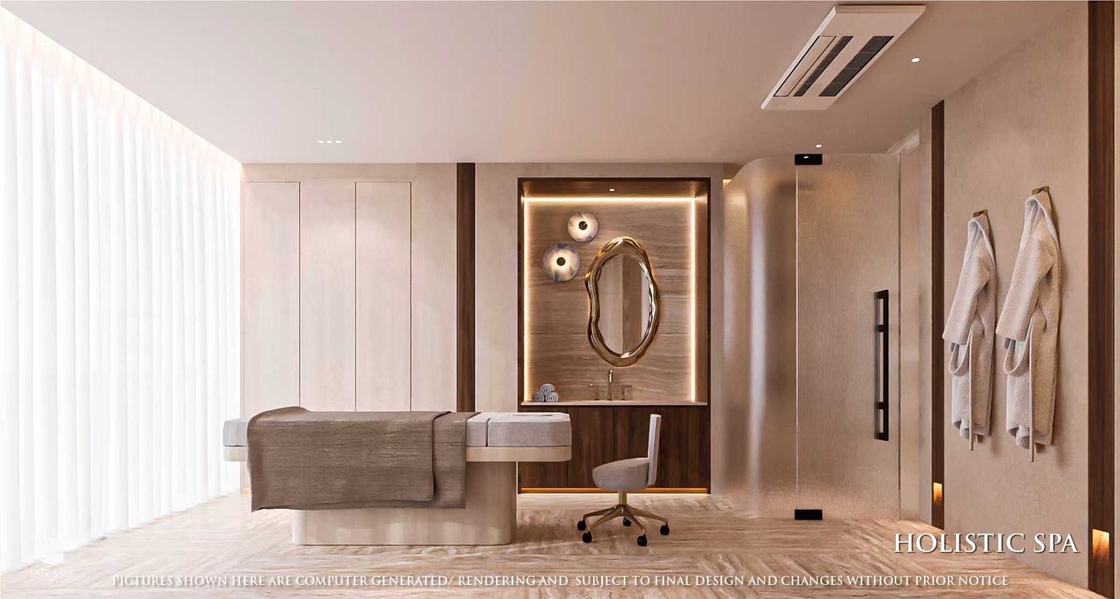 Každá rezidencia je inšpirovaná nadčasovou výzdobou v štýle Embassy s rafinovanou čierno-bielou estetikou, ktorá vyžaruje eleganciu a rafinovanosť. Okná siahajúce od podlahy po strop rámujú ohromujúce panoramatické výhľady, či už uprednostňujete pohľad na iskrivé more, príjemné bazénové oblasti alebo pulzujúce mesto pod vami.