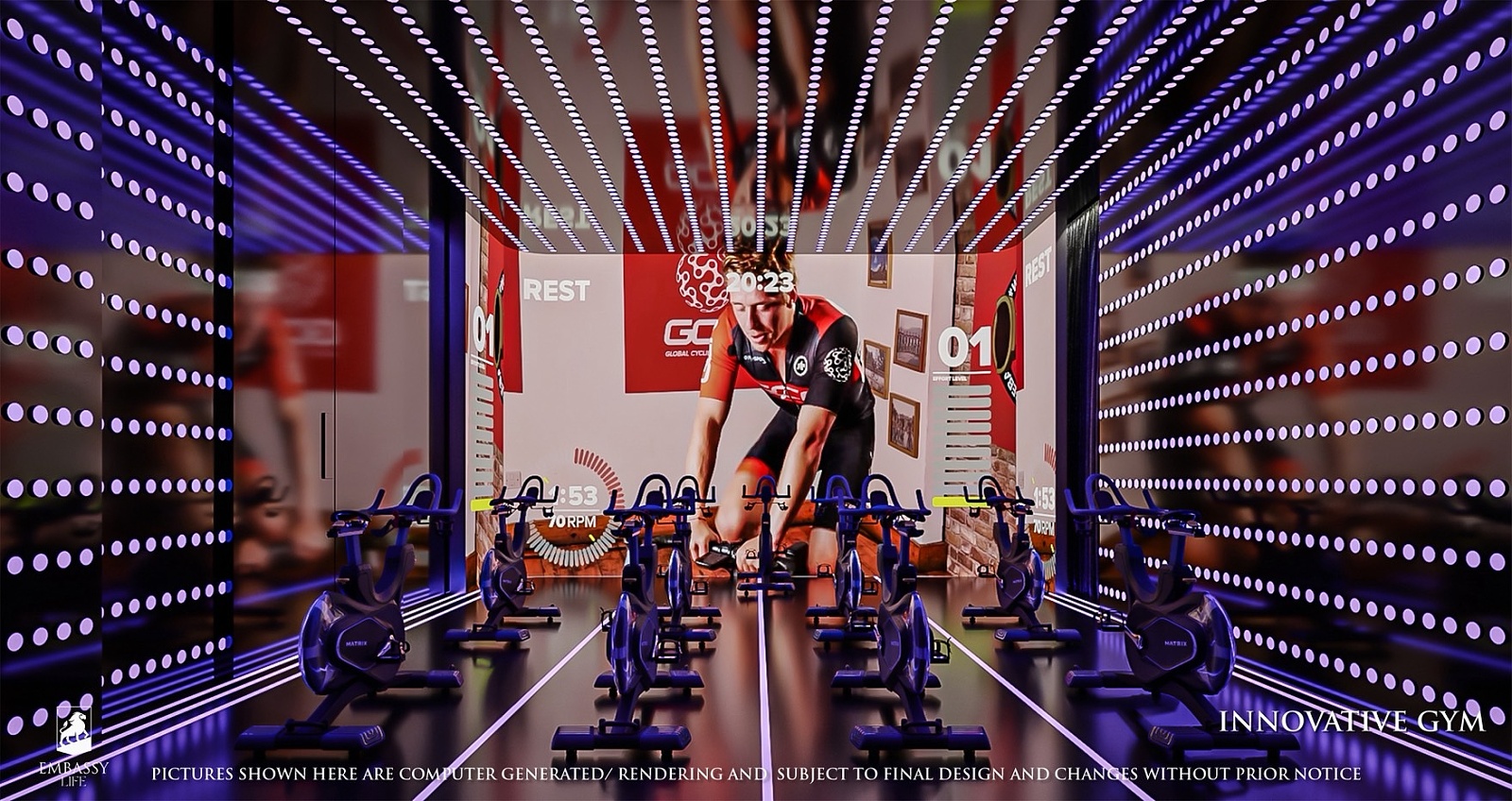 Fitness a wellness zaujímajú centrálne miesto na treťom poschodí, kde plne vybavená posilňovňa umožňuje obyvateľom udržiavať si zdravotné ciele v štýle. Unikátny jaskynný bazén a holistické spa ponúkajú ultimátny relaxačný zážitok, ktorý vás prenesie do sveta pokoja a omladzovacích procedúr.