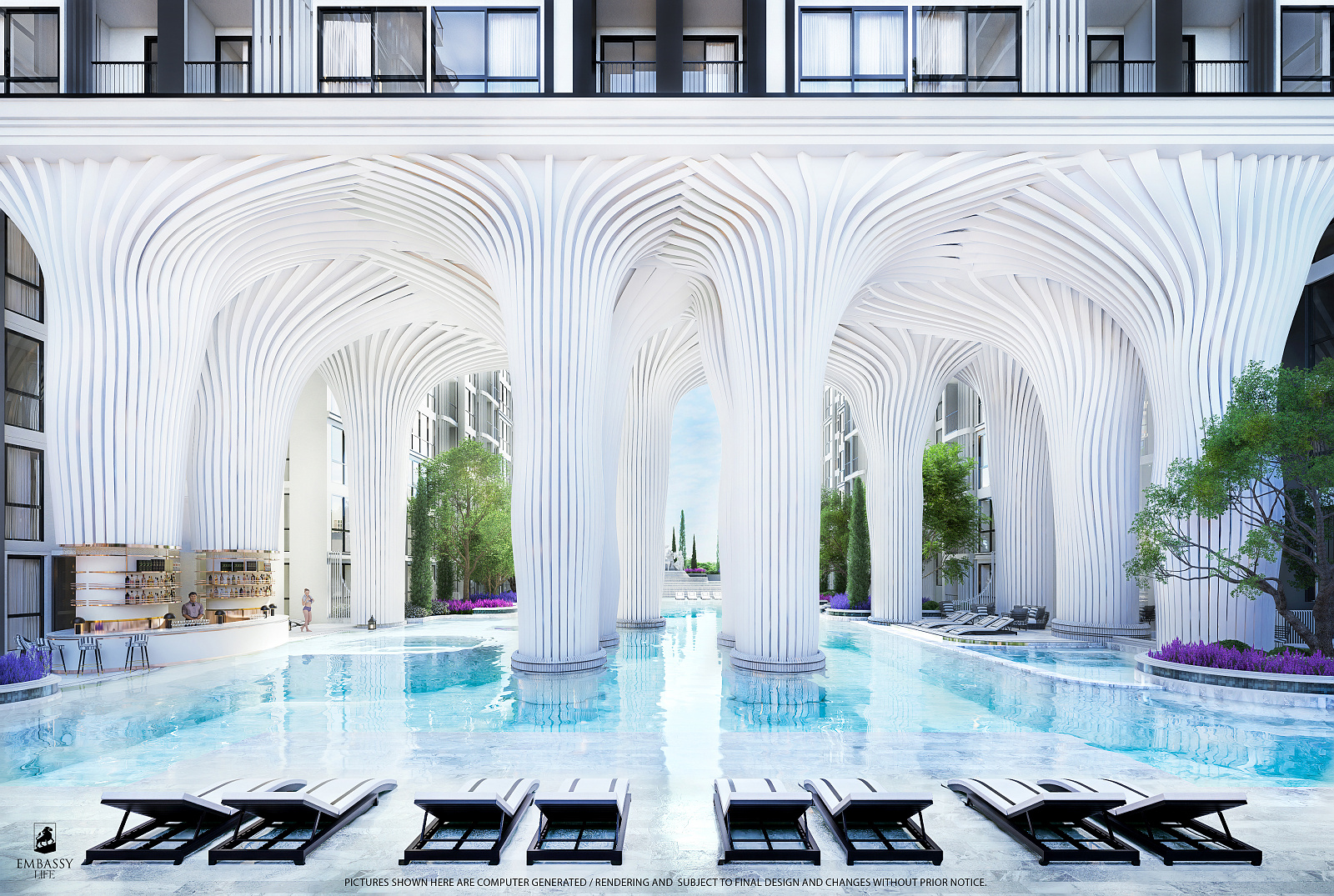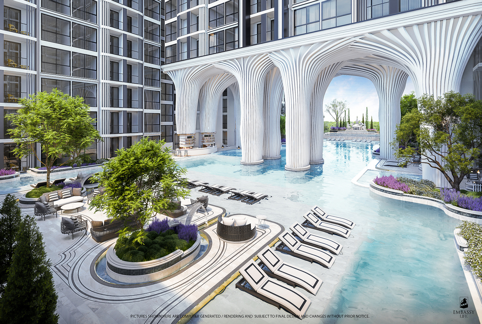 Embassy Life pozostáva z viac ako 900 jednotiek rozdelených do jednej 25-poschodovej veže a dvoch 18-poschodových veží. Nachádza sa len 500 metrov od pláže Jomtien Beach.