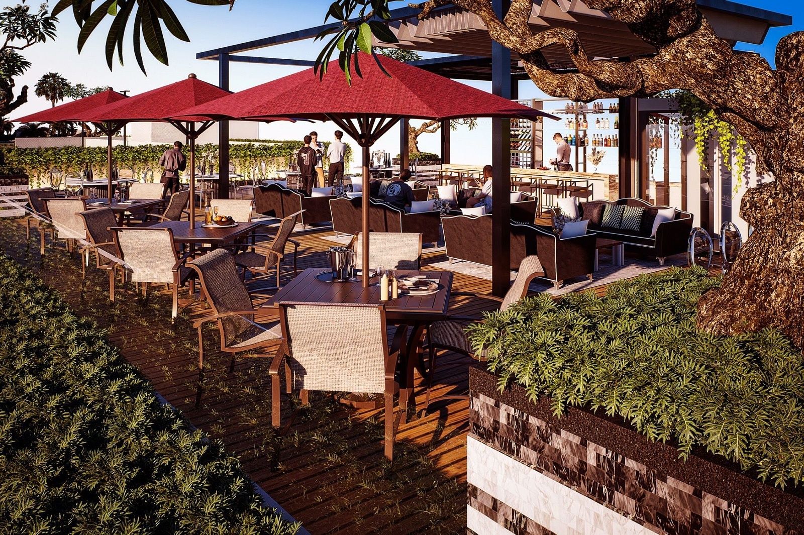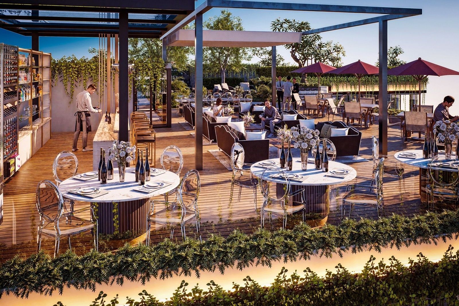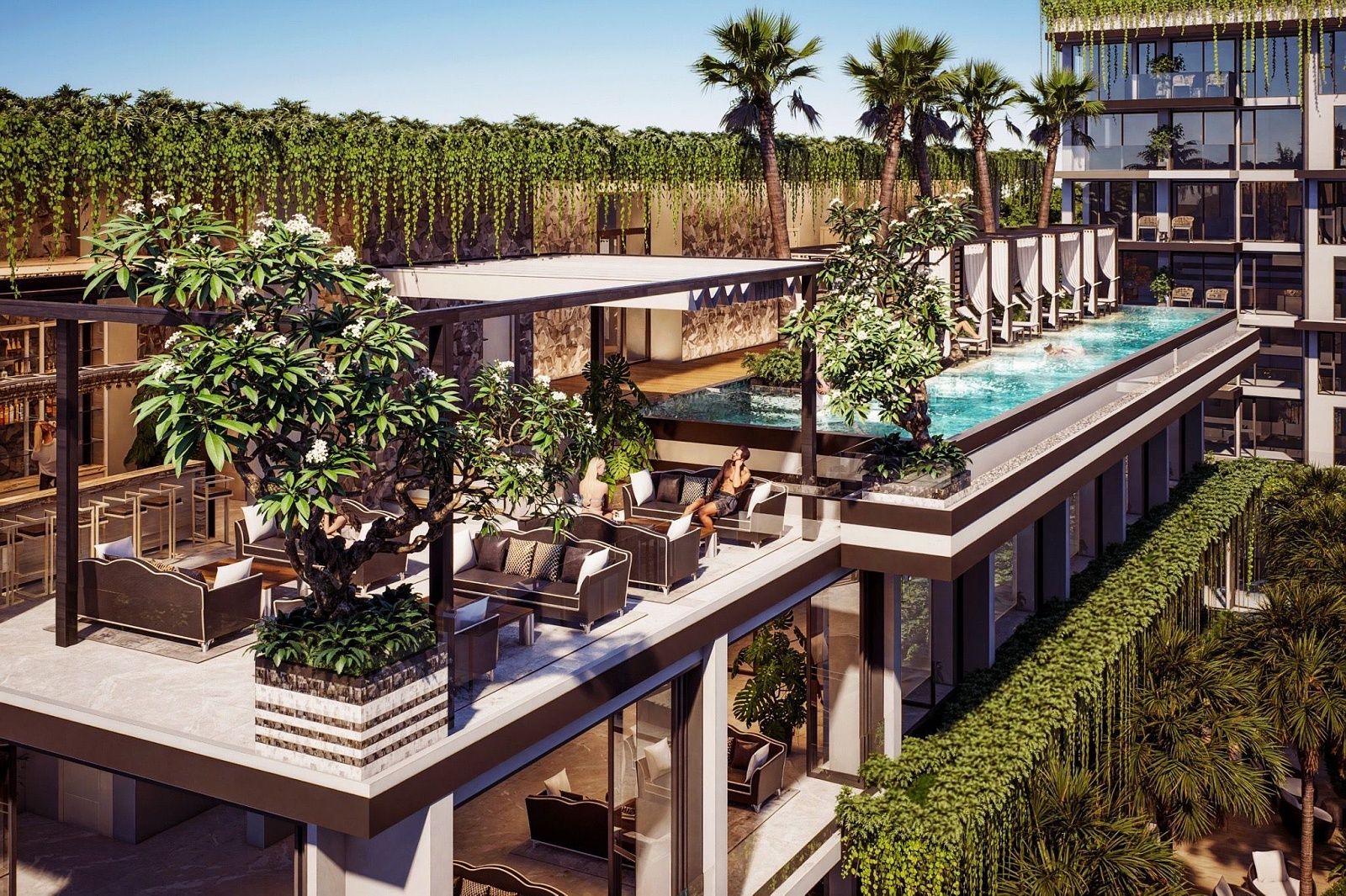 Okrem čistej relaxácie poskytuje clubhouse komplexné fitness a rekreačné možnosti. 24-hodinová posilňovňa je vybavená najmodernejšími strojmi, boxerským ringom a spinning štúdiom a obyvatelia môžu zdokonaľovať svoj swing v golfovom simulátore alebo viesť stretnutia s klientmi v súkromných obchodných miestnostiach. Večery ožívajú v zábavnom salóniku alebo hore na streche, kde nekonečný bazén a sunset bar rámujú panoramatické výhľady. Každá z troch obytných budov pridáva svoje vlastné súkromné vybavenie – pickleball kurty, detské zóny, strešné záhrady a tenisové kurty – čím zabezpečuje, že každý obyvateľ nájde dokonalý sposôb, ako sa uvoľniť alebo zostať aktívny.